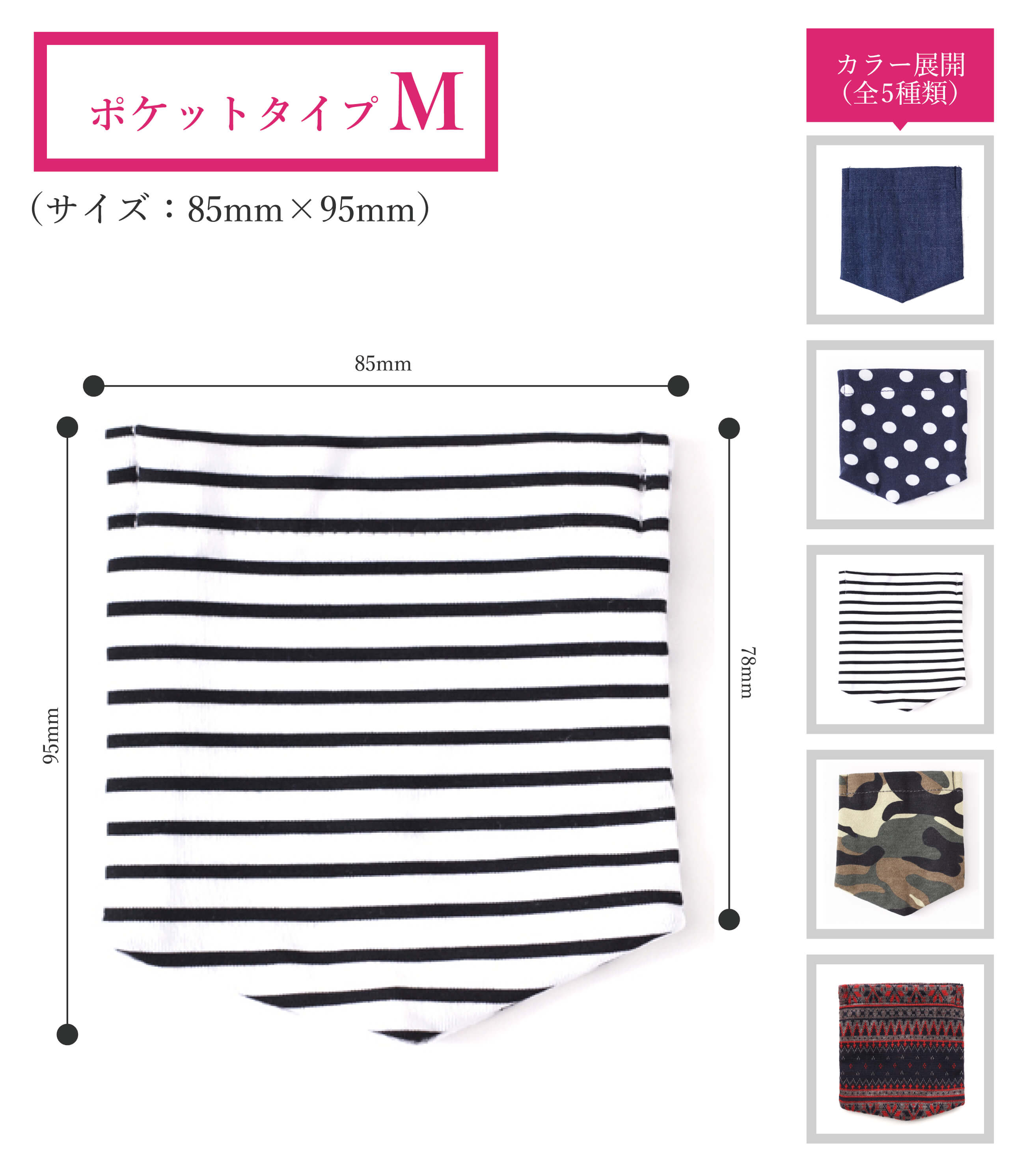 『ポケットタイプ』は3サイズ『ティッシュケースタイプ』と合わせ全10柄をご用意!