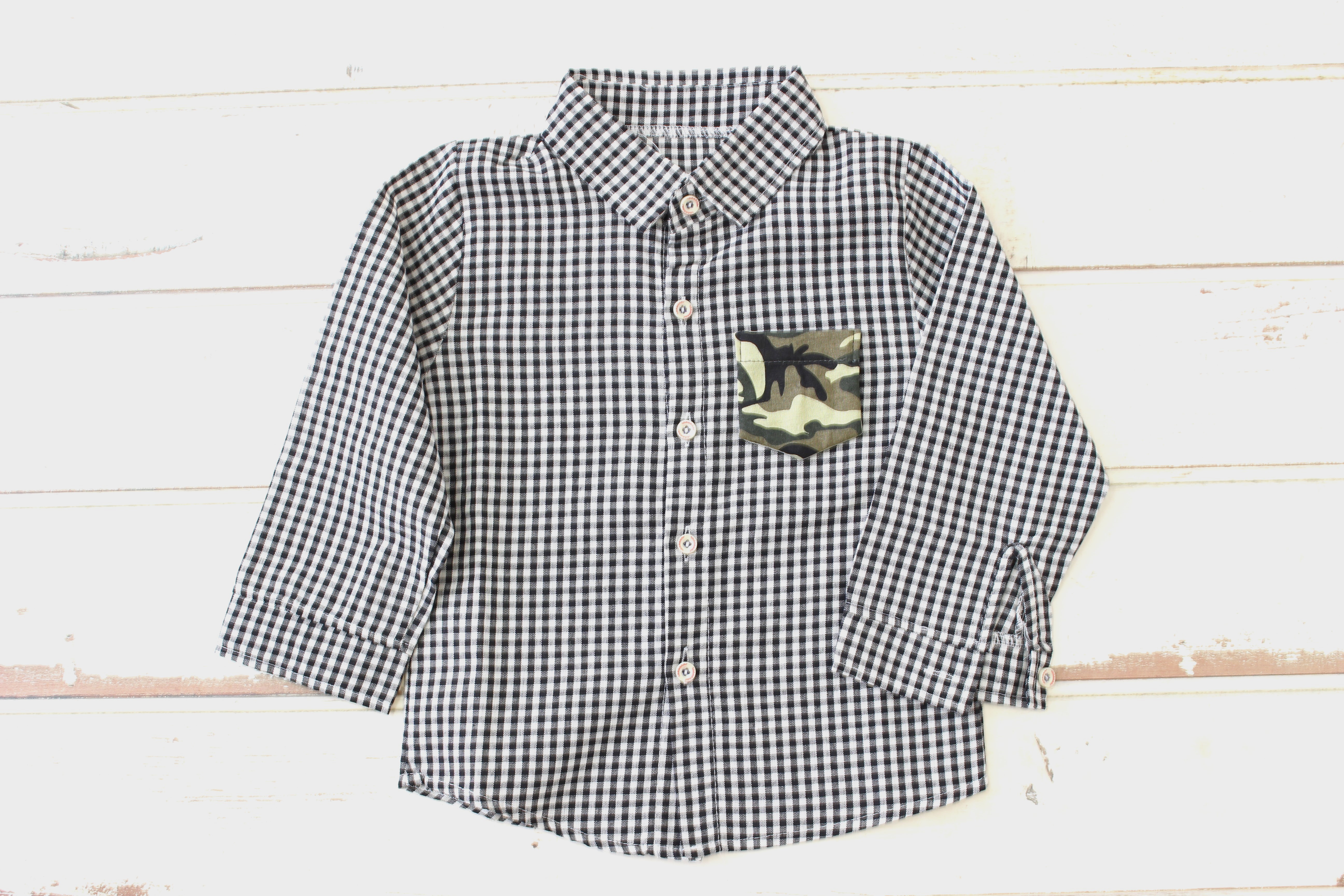(120cmサイズのシャツに「Lサイズ」のピタポケを取り付けています)