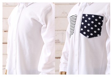 お手持ちのお洋服にも『ピタポケ』を後足しすれば、他の人とかぶらないオリジナルアイテムに!